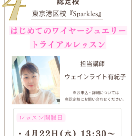 WJDA認定校では、 ワイヤージュエリーの世界を深く 体感できる “トライアルレッスン” を開催中! 2026年4月&5月のトライアルレッスン 認定校…