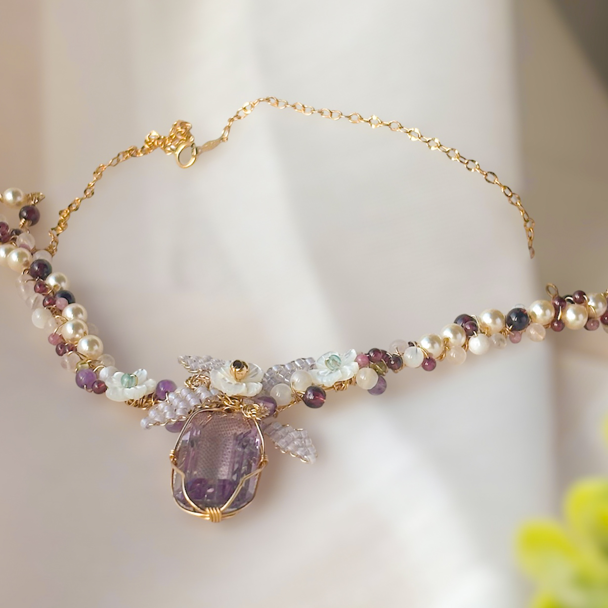 天然石をワイヤーで仕立てるワイヤージュエリー。