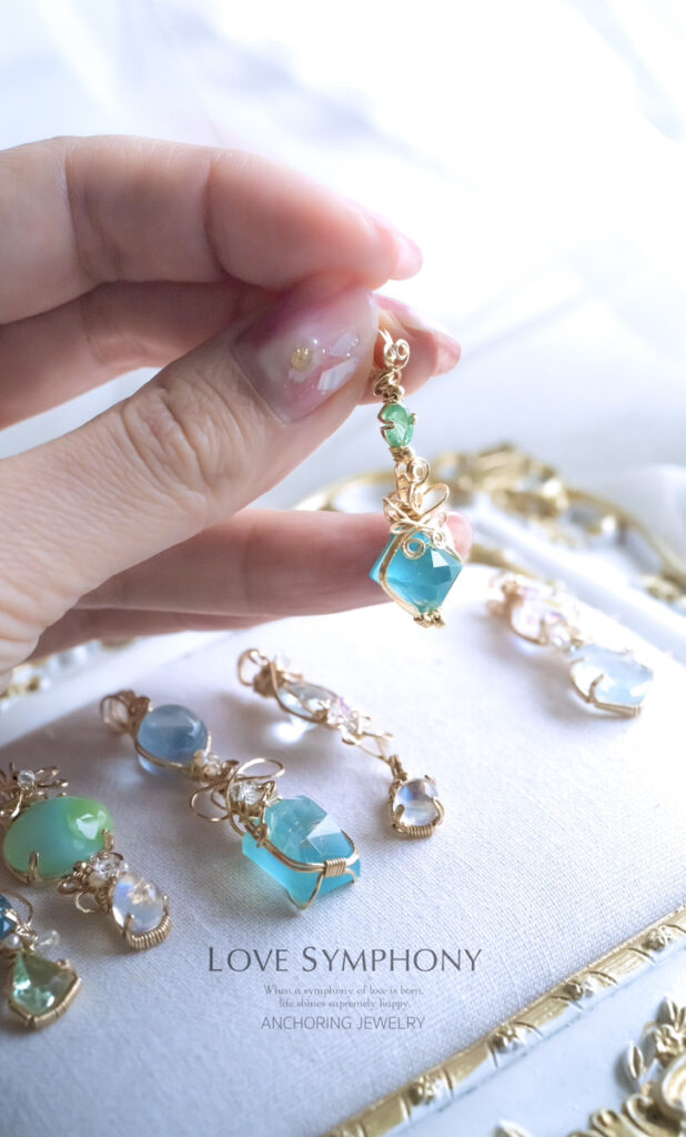 ラブ・シンフォニーがお届けするアンカリングジュエリーは、世界中から選び抜いた天然石を使い、一点一点、心を込めて手作業せ制作しています。何百年、何千年と地球が育んだ天然の石のため、ひとつひとつ色や形、大きさが異なります 。内包物なども、魅力としてお楽しみください 。